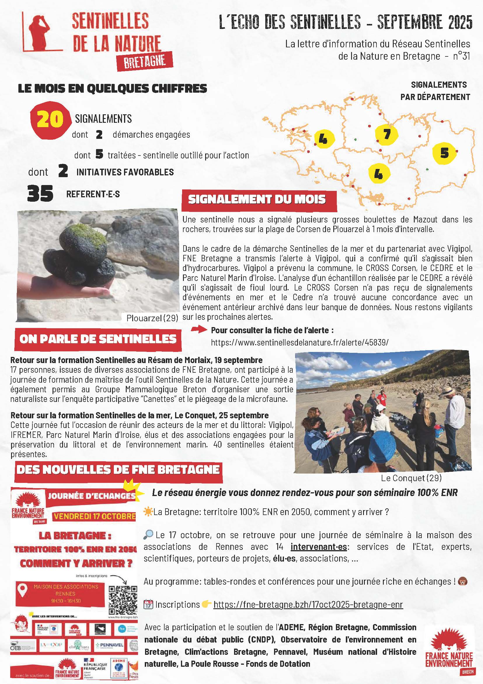 Statistiques, actualités, campagnes, agenda… retrouvez toutes les informations sur le dispositif dans la dernière lettre d’information des Sentinelles de la Nature en Bretagne…