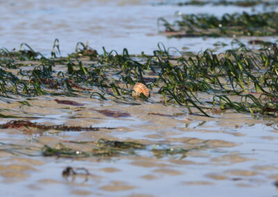Les herbiers de zostères sont des habitats riches et sensibles. Ils peuvent accueillir jusqu’à 500 espèces faune / flore, et jouent des rôles écologiques essentiels (zone d’alimentation, de reproduction, de refuge). Ce sont aussi de véritables atouts pour limiter les impacts de la houle (et donc l’érosion littorale) et ce sont des puits à carbone importants.